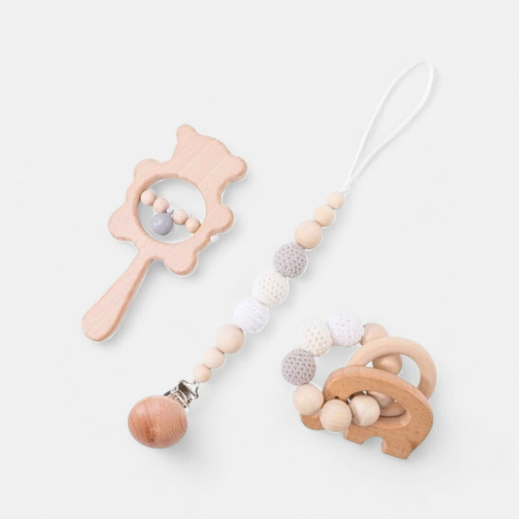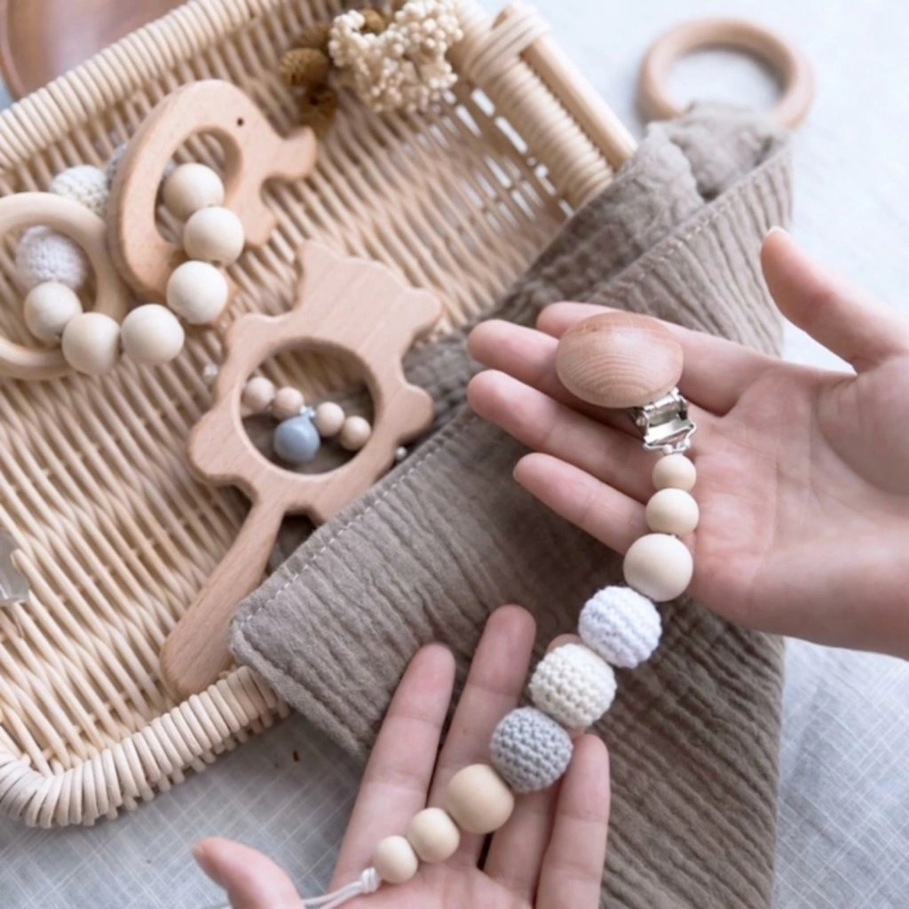 01 Prendedor de chupetas - (aprox. 18,5cm) Material: Madeira