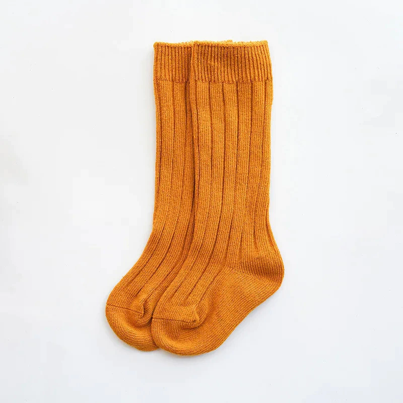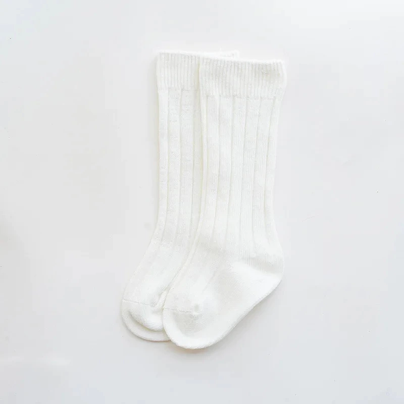 Detalhes: Confeccionada em algodão, poliamida e elastano as meias possuem comprimento 3/4, que vai até a altura do joelho do bebê.